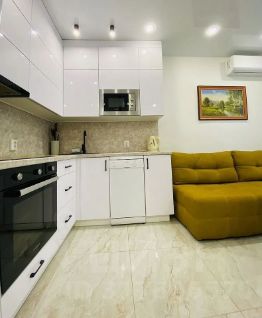 Продаётся уютная квартира с превосходным ремонтом. Стены, пол и дизайн выполнены в светлых тонах из качественных материалов. Керамогранит уложен на полу в коридоре, кухне и санузле, а в комнате — ламинат. В кухне-гостиной есть подогрев пола. Потолок со встроенными точечными светильниками натянут везде. Санузел отделан плиткой, установлена инсталляция.