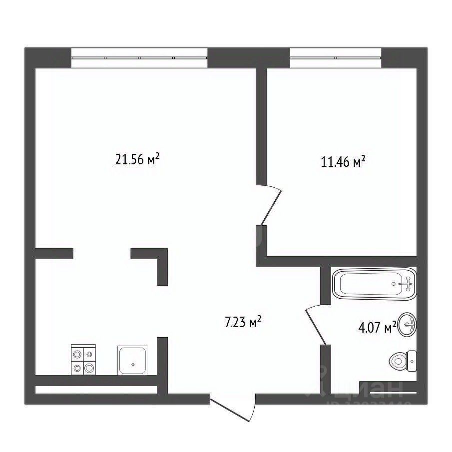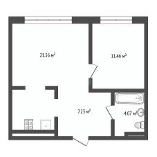 Предлагается к продаже квартира формата "1+": просторная кухня-гостиная и изолированная спальная комната.