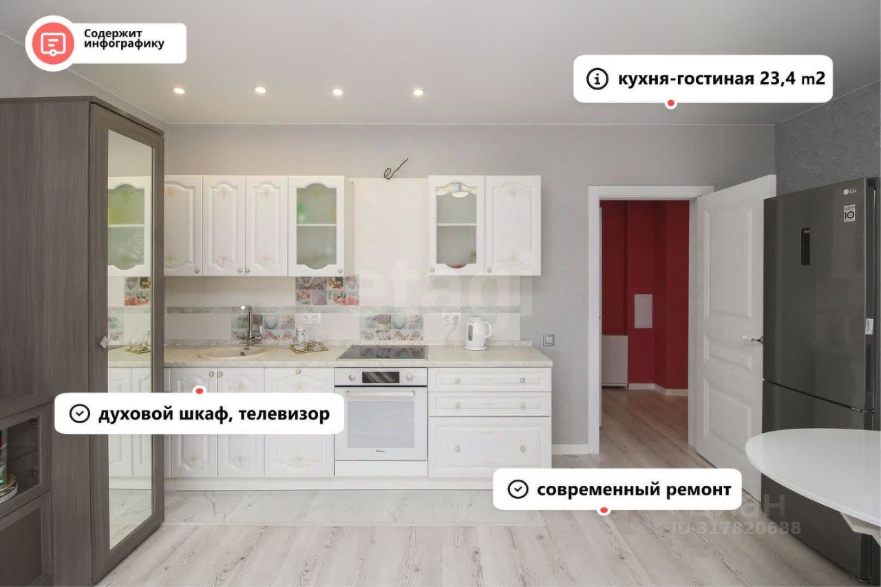 • Кухня-гостиная: Просторная (23,4 м²) с установленными фильтрами на воду.