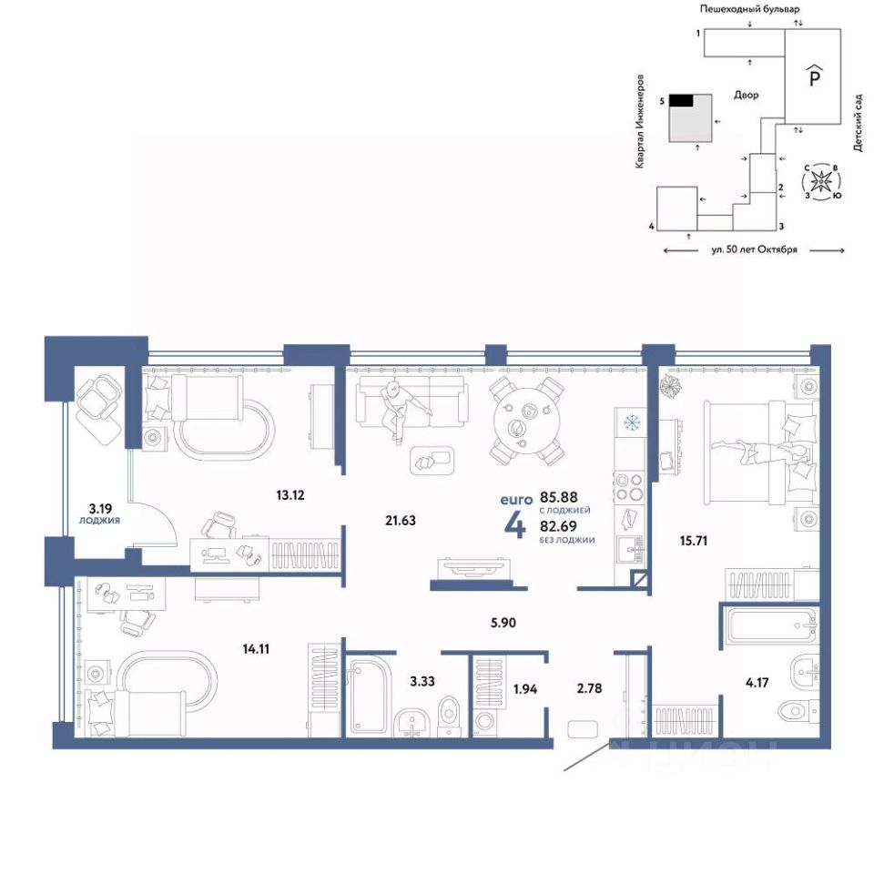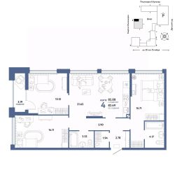 Продается 4комнатная квартира на 4 этаже от застройщика Страна Девелопмент. Площадь квартиры 85,89 кв. м. Стоимость указана без учета акций.