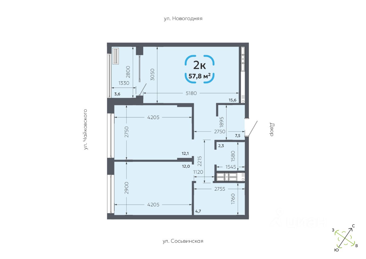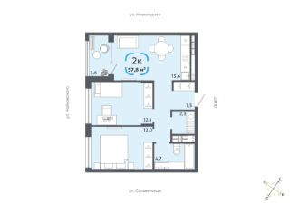 Общая площадь57,8 м²