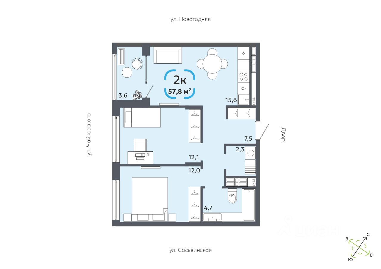 ЖК "Свой" — жилой комплекс для людей, которым важно чувство родного места и домашней атмосферы. Проект включает в себя 2 дома высотой 16 этажей. Здесь 360 квартир площадью от 34 до 74 м2. Срок сдачи 4 квартал 2026 год. ЖК расположен на пересечении улиц Ватутина, Щербакова и Чайковского — это тихий, спокойный район в Центральном округе Тюмени. Здесь развитая инфраструктура: поблизости несколько детских садов и школ, медицинские учреждения, крупные торговые центры, фитнес-клубы и парки для отдыха. В закрытых дворах: зоны для тихого отдыха, площадка для детей с лабиринтом, всесезонные деревья и кустарники. Шумные зоны вынесены за пределы двора. Здесь находится зона для воркаута и баскетбольная площадка, коворкинг-зоны, а также экран для просмотра фильмов. Для парковки автомобилей обустроено 323 машиноместа. В каждой парадной есть теплый тамбур и домофон с Face ID. В колясочных установлен пост для подкачки колёс и лапомойка для домашних питомцев. В проекте широкий выбор квартир: площадью от 34 до 74 м2, с мастер-спальнями, постирочными, просторными кухнями-гостиными, двумя санузлами, с окнами в ванной.