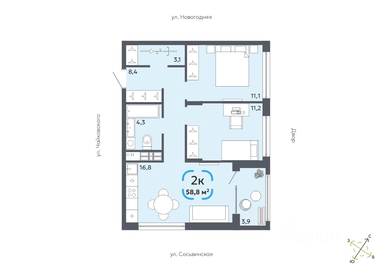 ЖК "Свой" — жилой комплекс для людей, которым важно чувство родного места и домашней атмосферы. Проект включает в себя 2 дома высотой 16 этажей. Здесь 360 квартир площадью от 34 до 74 м2. Срок сдачи 4 квартал 2026 год. ЖК расположен на пересечении улиц Ватутина, Щербакова и Чайковского — это тихий, спокойный район в Центральном округе Тюмени. Здесь развитая инфраструктура: поблизости несколько детских садов и школ, медицинские учреждения, крупные торговые центры, фитнес-клубы и парки для отдыха. В закрытых дворах: зоны для тихого отдыха, площадка для детей с лабиринтом, всесезонные деревья и кустарники. Шумные зоны вынесены за пределы двора. Здесь находится зона для воркаута и баскетбольная площадка, коворкинг-зоны, а также экран для просмотра фильмов. Для парковки автомобилей обустроено 323 машиноместа. В каждой парадной есть теплый тамбур и домофон с Face ID. В колясочных установлен пост для подкачки колёс и лапомойка для домашних питомцев. В проекте широкий выбор квартир: площадью от 34 до 74 м2, с мастер-спальнями, постирочными, просторными кухнями-гостиными, двумя санузлами, с окнами в ванной.