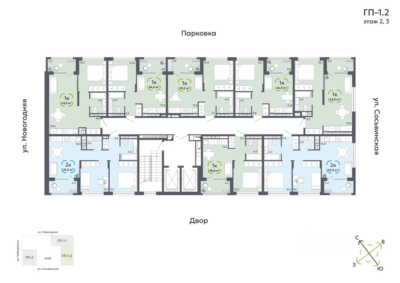 ЖК "Свой" — жилой комплекс для людей, которым важно чувство родного места и домашней атмосферы. Проект включает в себя 2 дома высотой 16 этажей. Здесь 360 квартир площадью от 34 до 74 м2. Срок сдачи 1 квартал 2028 год. ЖК расположен на пересечении улиц Ватутина, Щербакова и Чайковского — это тихий, спокойный район в Центральном округе Тюмени. Здесь развитая инфраструктура: поблизости несколько детских садов и школ, медицинские учреждения, крупные торговые центры, фитнес-клубы и парки для отдыха. В закрытых дворах: зоны для тихого отдыха, площадка для детей с лабиринтом, всесезонные деревья и кустарники. Шумные зоны вынесены за пределы двора. Здесь находится зона для воркаута и баскетбольная площадка, коворкинг-зоны, а также экран для просмотра фильмов. Для парковки автомобилей обустроено 323 машиноместа. В каждой парадной есть теплый тамбур и домофон с Face ID. В колясочных установлен пост для подкачки колёс и лапомойка для домашних питомцев. В проекте широкий выбор квартир: площадью от 34 до 74 м2, с мастер-спальнями, постирочными, просторными кухнями-гостиными, двумя санузлами, с окнами в ванной.