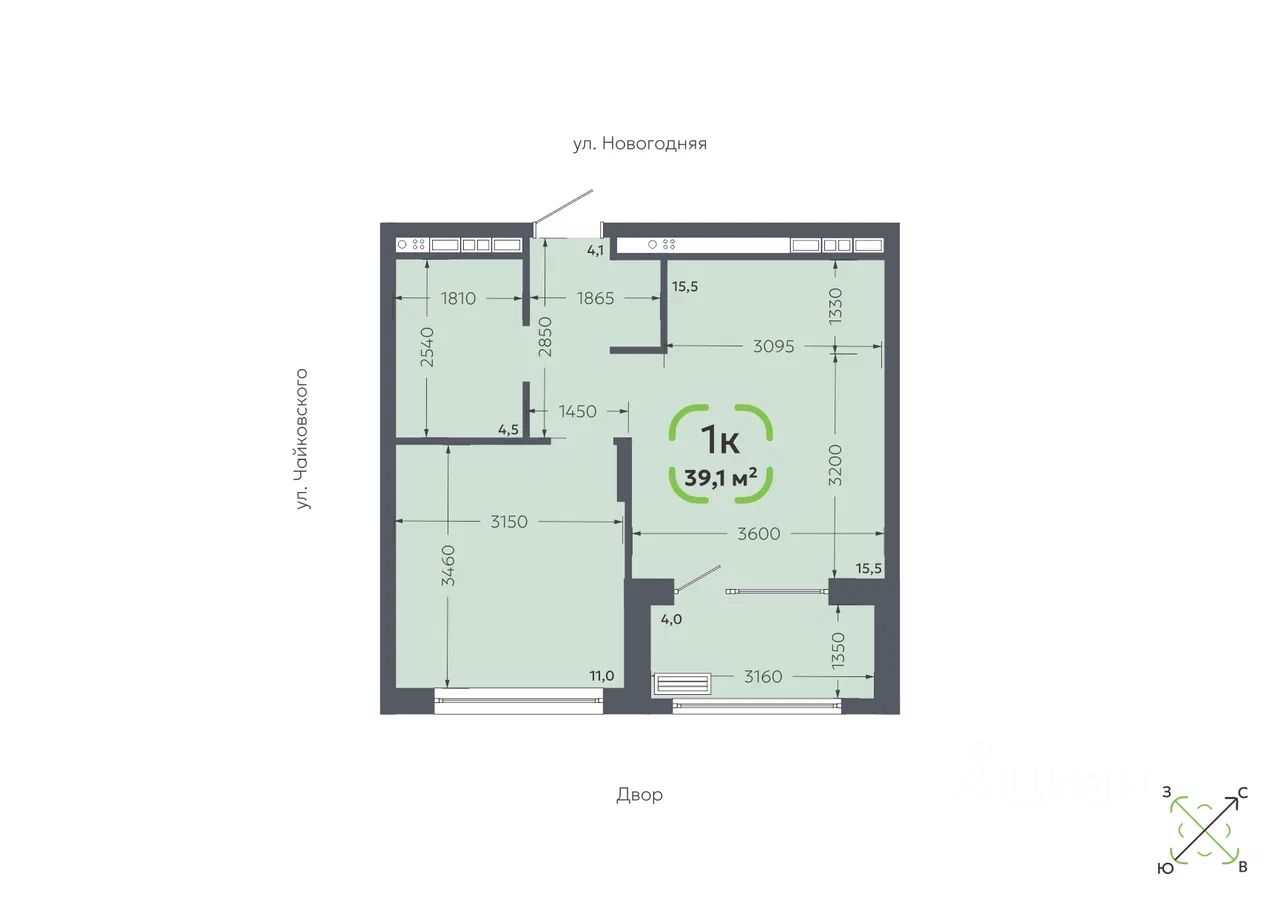 Общая площадь39,1 м²