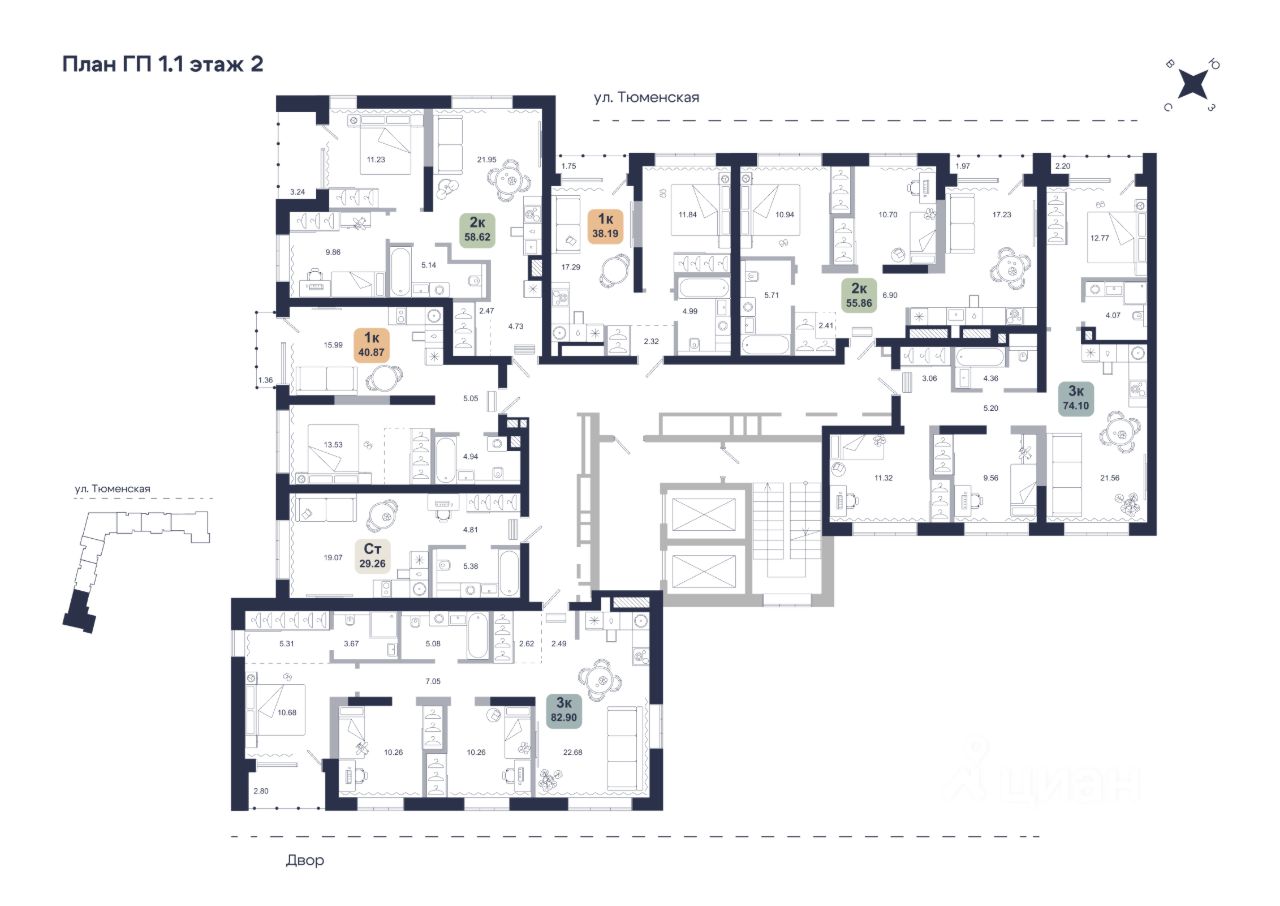 Хито — квартал с японской эстетикой в районе Дударева. Проект будет состоять из 3 домов, первая очередь строительства — это 17-этажный дом на 7 секций.