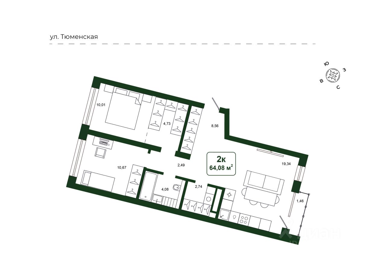 Общая площадь64,08 м²