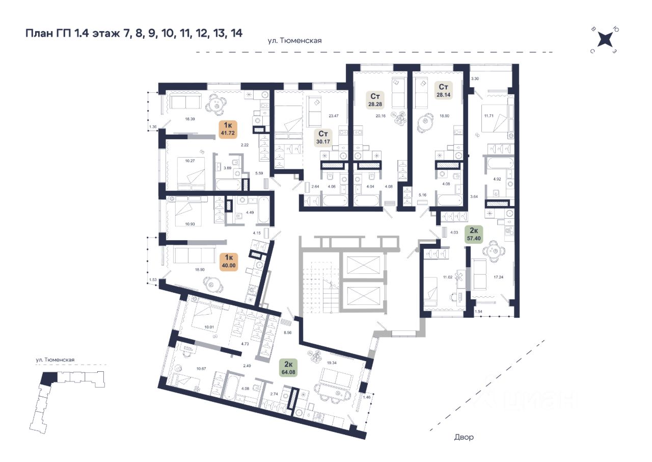 Хито — квартал с японской эстетикой в районе Дударева. Проект будет состоять из 3 домов, первая очередь строительства — это 17-этажный дом на 7 секций.