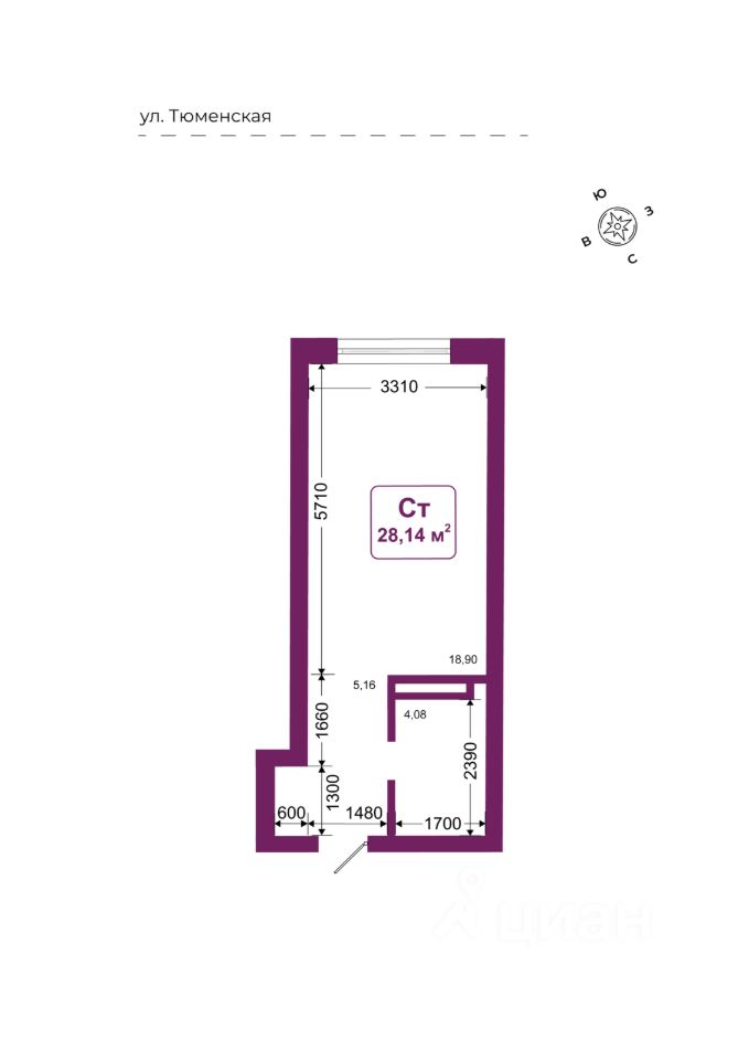 Общая площадь28,14 м²