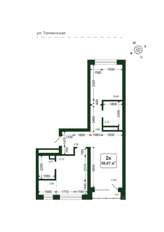 Общая площадь56,67 м²