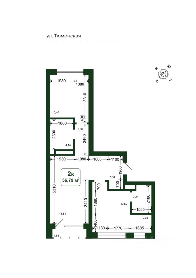 Общая площадь56,79 м²