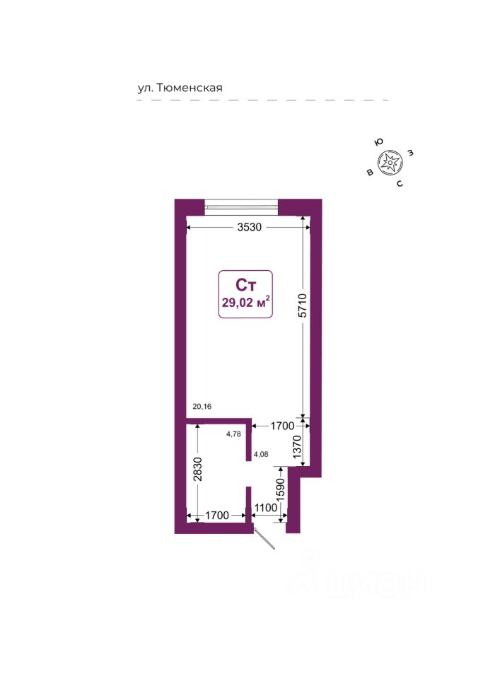 Общая площадь29,02 м²