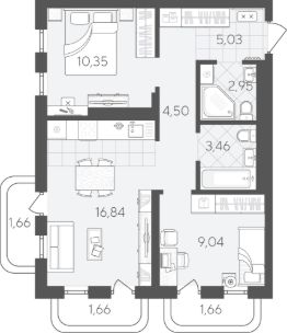 Квартира с 2 спальнями площадью 57,15 кв.м