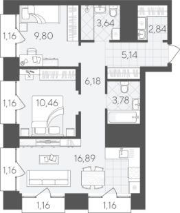 Двухкомнатная квартира 64.53 кв.м на 24 этаже — идеальный вариант для молодой семьи или пары. Просторная кухня-гостиная станет местом семейных встреч, а две спальни обеспечат удобство и приватность для каждого.