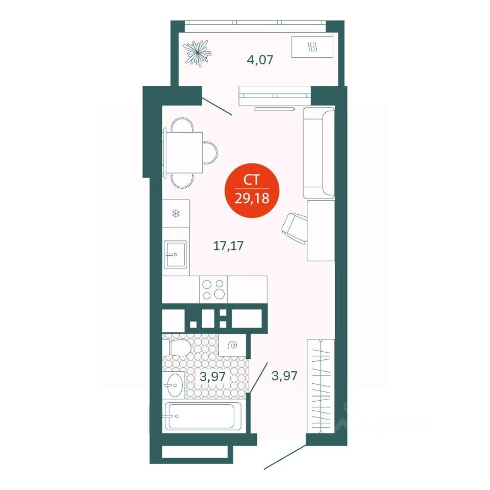 Общая площадь29,18 м²