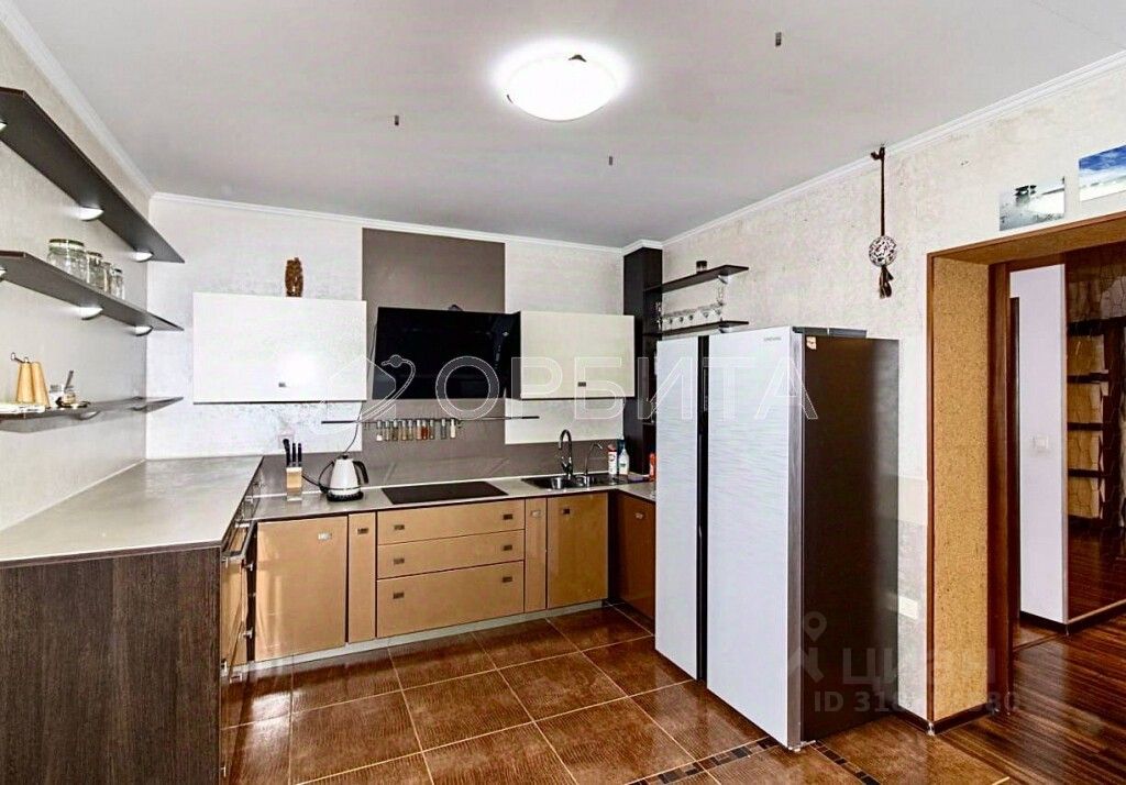 Мебель и техника остаются — кухня с каменной столешницей, духовой шкаф, варочная панель, вытяжка, спальные и рабочие зоны