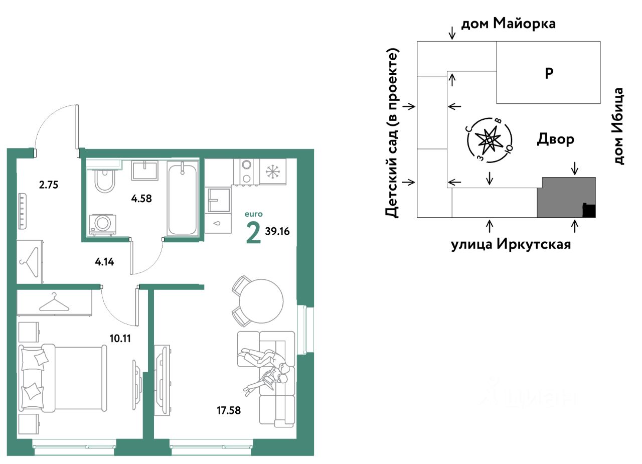 Продается 2комнатная квартира на 3 этаже от застройщика Страна Девелопмент. Площадь квартиры 39,16 кв. м.