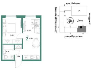 Продается 2комнатная квартира на 8 этаже от застройщика Страна Девелопмент. Площадь квартиры 35,37 кв. м.