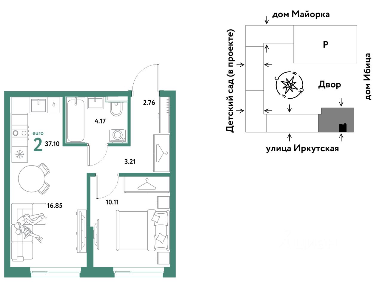 Продается 2комнатная квартира на 8 этаже от застройщика Страна Девелопмент. Площадь квартиры 37,1 кв. м.