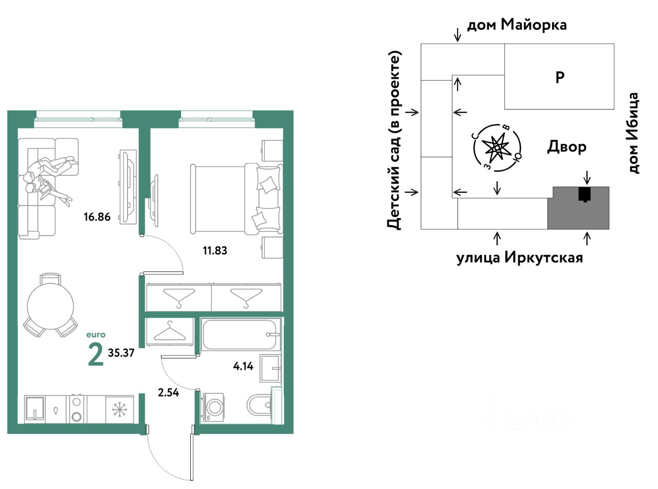 Продается 2комнатная квартира на 15 этаже от застройщика Страна Девелопмент. Площадь квартиры 35,37 кв. м.