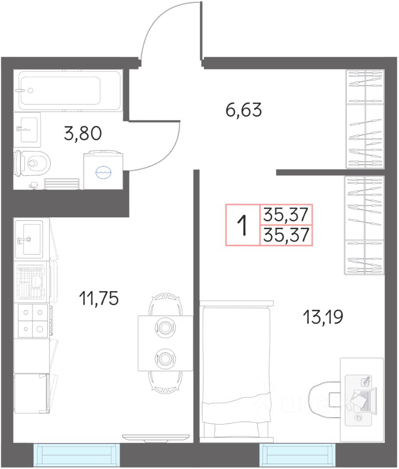 Продаётся 1-комнатная квартира в строящемся доме (ГП-1 (Дом 29)), срок сдачи: I-кв. 2027, общей площадью 35.37 кв.м., на 2 этаже. Рассвет в Тобольске - это жилой комплекс из 4 домов, расположенный в границах улиц Нефтехимиков и Александра Абдулова, созданный для семейного проживания.
