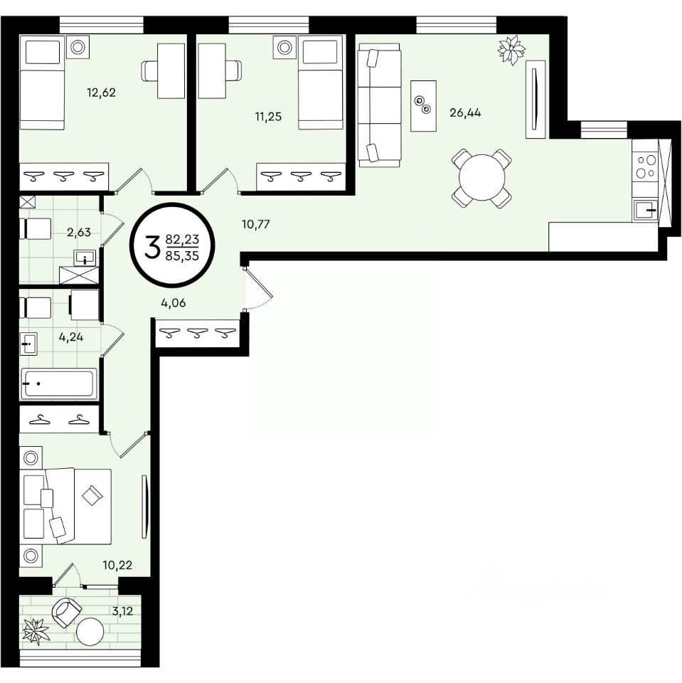 Общая площадь85,35 м²
