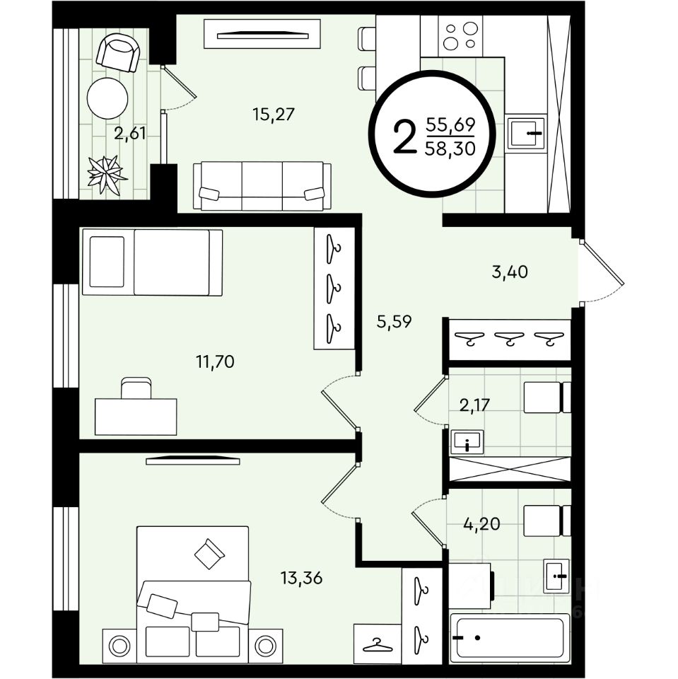 В Зеленых аллеях найдется планировочное решение на любой вкус — есть как классические варианты, так и трендовые с лаунж-террасами, мастер-спальнями, кухнями-гостиными, с гардеробными и постирочными комнатами, с антресольными этажами. Есть квартиры с предчистовой отделкой и с готовым ремонтом.