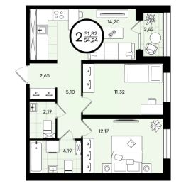 Общая площадь54,24 м²