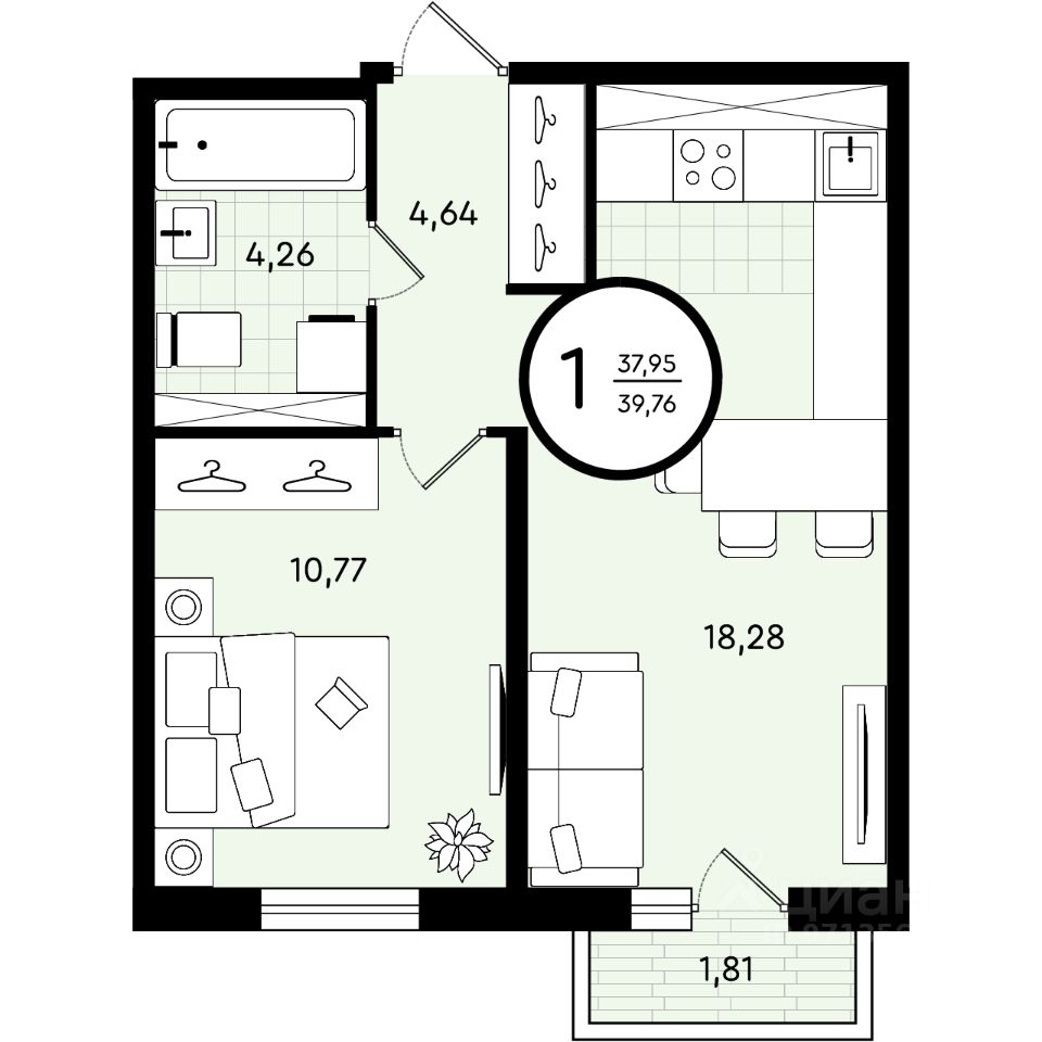 Общая площадь39,79 м²