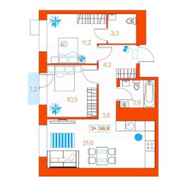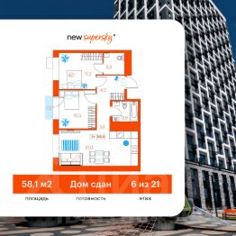 Продаётся 2-комнатная квартира в сданном доме (Ветеранов Труда, 36к1), срок сдачи: II-кв. 2025, общей площадью 58.9 кв.м., на 6 этаже. Новый жилой комплекс от Специализированного застройщика "Суперский" расположен в Ленинском округе Тюмени на ул. Ветеранов труда.