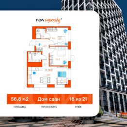 Продаётся 2-комнатная квартира в сданном доме (Ветеранов Труда, 36к1), срок сдачи: II-кв. 2025, общей площадью 56.9 кв.м., на 16 этаже. Новый жилой комплекс от Специализированного застройщика "Суперский" расположен в Ленинском округе Тюмени на ул. Ветеранов труда.