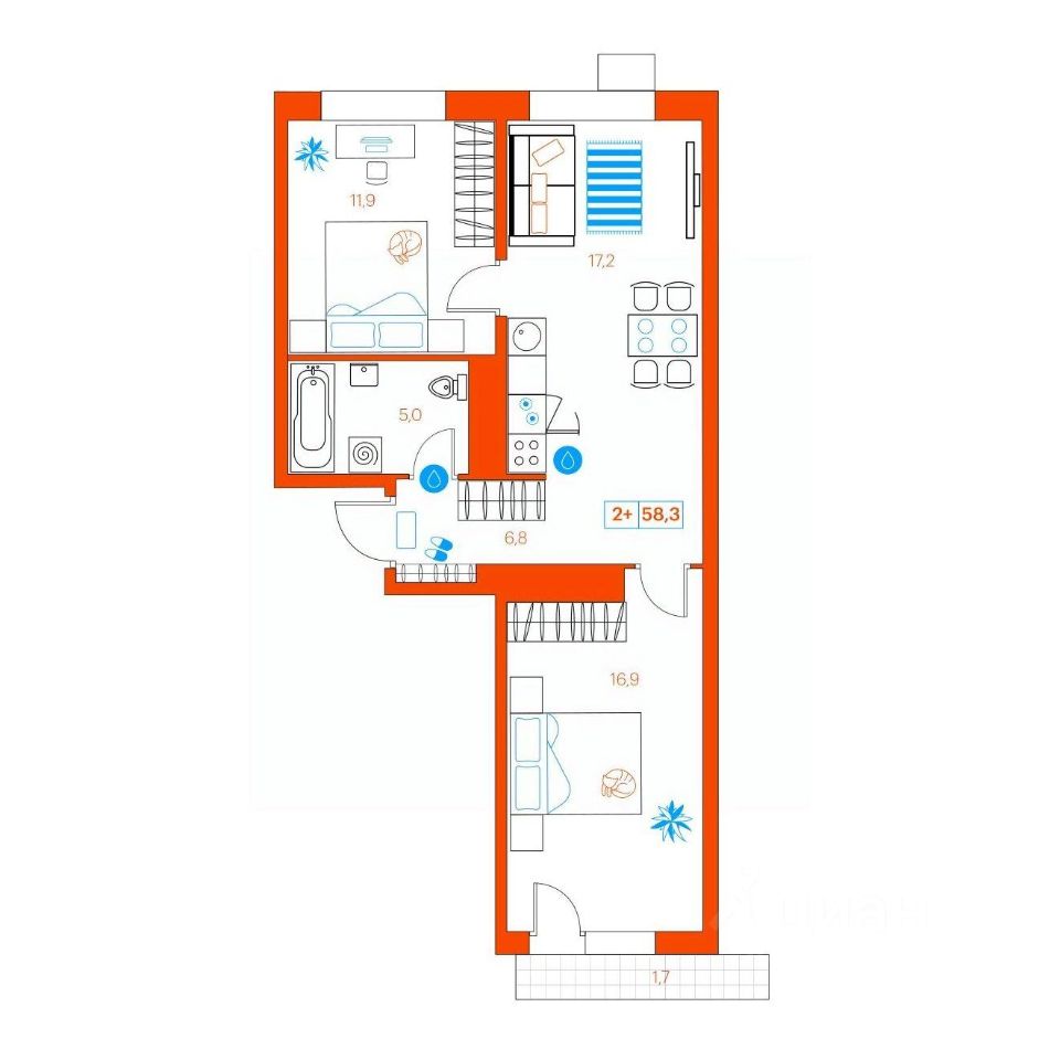 Продаётся 2-комнатная квартира в сданном доме (Ветеранов Труда, 36к1), срок сдачи: II-кв. 2025, общей площадью 58.6 кв.м., на 7 этаже. Новый жилой комплекс от Специализированного застройщика "Суперский" расположен в Ленинском округе Тюмени на ул. Ветеранов труда.