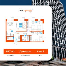 Продаётся 2-комнатная квартира в сданном доме (Ветеранов Труда, 36к1), срок сдачи: II-кв. 2025, общей площадью 67.5 кв.м., на 8 этаже. Новый жилой комплекс от Специализированного застройщика "Суперский" расположен в Ленинском округе Тюмени на ул. Ветеранов труда.