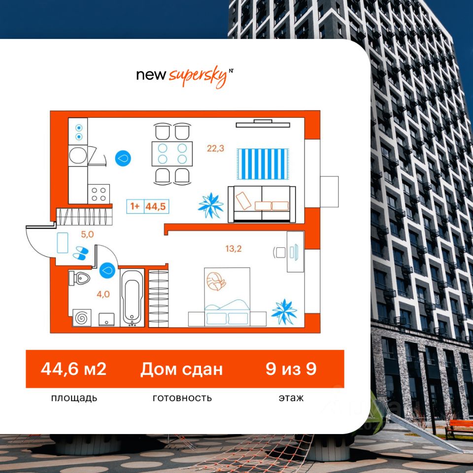 Продаётся 1-комнатная квартира в сданном доме (Ветеранов Труда, 36к1), срок сдачи: II-кв. 2025, общей площадью 44.5 кв.м., на 9 этаже. Новый жилой комплекс от Специализированного застройщика "Суперский" расположен в Ленинском округе Тюмени на ул. Ветеранов труда.