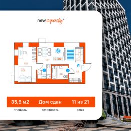 Продаётся студия в сданном доме (Ветеранов Труда, 36к1), срок сдачи: II-кв. 2025, общей площадью 36.1 кв.м., на 11 этаже. Новый жилой комплекс от Специализированного застройщика "Суперский" расположен в Ленинском округе Тюмени на ул. Ветеранов труда.