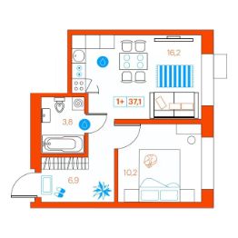 Продаётся 1-комнатная квартира в сданном доме (Ветеранов Труда, 36к1), срок сдачи: II-кв. 2025, общей площадью 37.1 кв.м., на 15 этаже. Новый жилой комплекс от Специализированного застройщика "Суперский" расположен в Ленинском округе Тюмени на ул. Ветеранов труда.