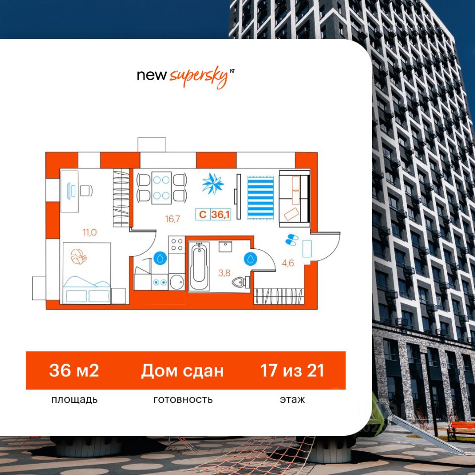 Продаётся студия в сданном доме (Ветеранов Труда, 36к1), срок сдачи: II-кв. 2025, общей площадью 36.1 кв.м., на 17 этаже. Новый жилой комплекс от Специализированного застройщика "Суперский" расположен в Ленинском округе Тюмени на ул. Ветеранов труда.