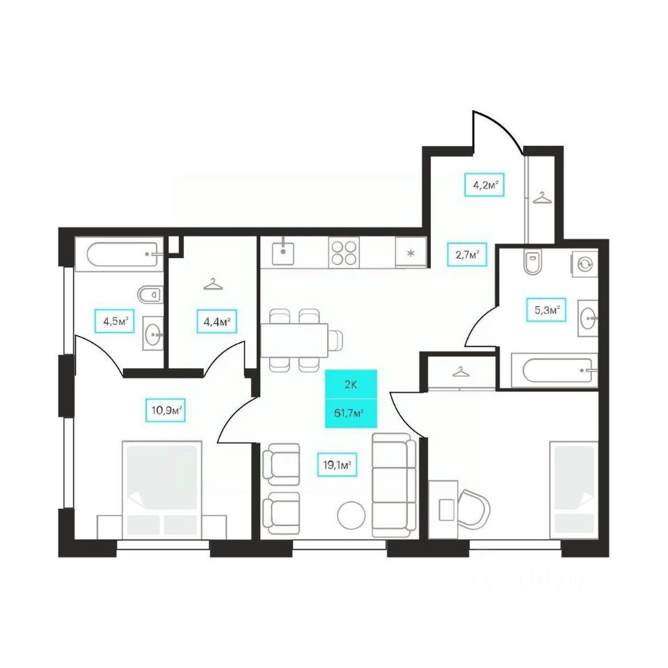 Продаётся 2-комнатная квартира в строящемся доме (Дом 6к1), срок сдачи: III-кв. 2026, общей площадью 61.7 кв.м., на 3 этаже. Новый жилой комплекс "Futuro" от застройщика "newton" расположен в г. Тюмень на Ставропольской улице.
