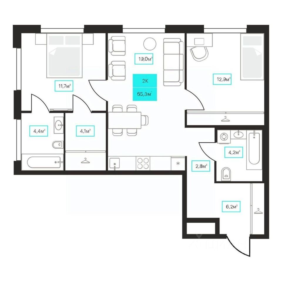 65,3 м²