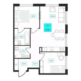 Продаётся 2-комнатная квартира в строящемся доме (Дом 6к1), срок сдачи: IV-кв. 2025, общей площадью 56.9 кв.м., на 3 этаже. Новый жилой комплекс "Futuro" от застройщика "newton" расположен в г. Тюмень на Ставропольской улице.