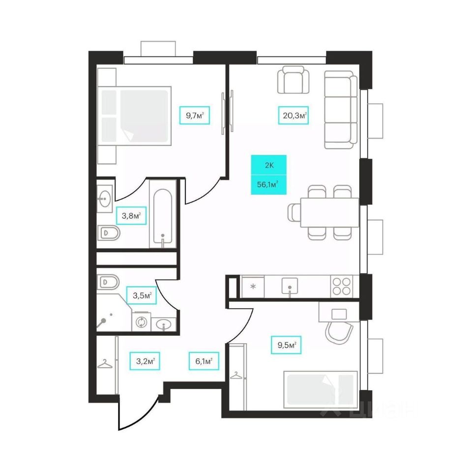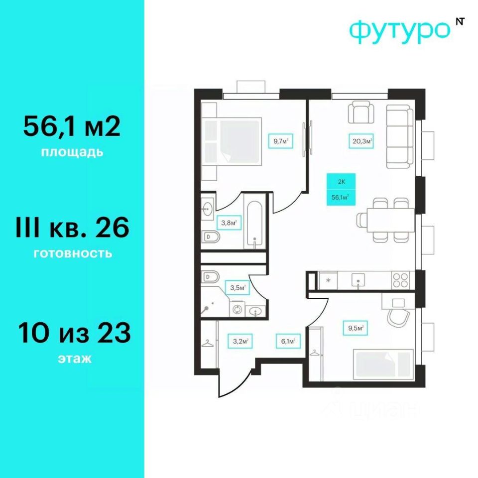Продаётся 2-комнатная квартира в строящемся доме (Дом 6к1), срок сдачи: III-кв. 2026, общей площадью 56.1 кв.м., на 10 этаже. Новый жилой комплекс "Futuro" от застройщика "newton" расположен в г. Тюмень на Ставропольской улице.