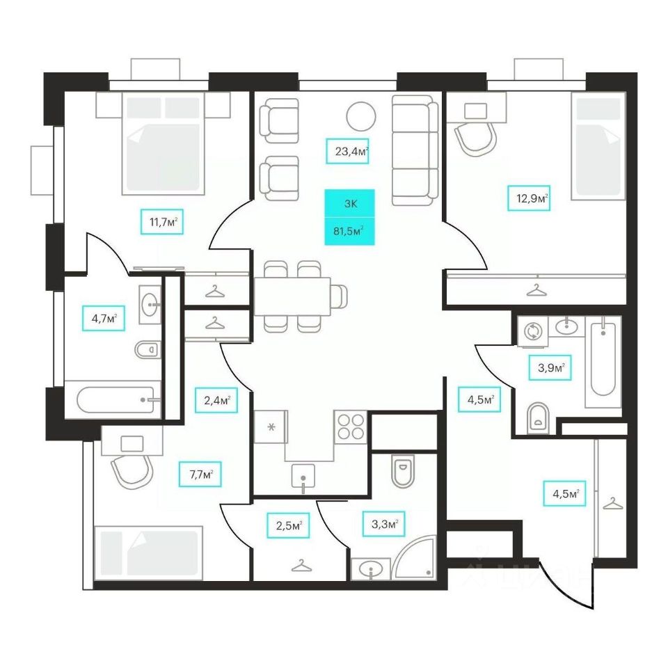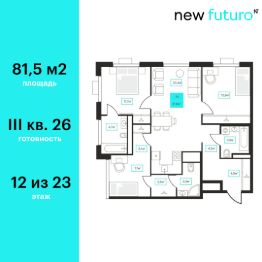 Продаётся 3-комнатная квартира в строящемся доме (Дом 6к1), срок сдачи: III-кв. 2026, общей площадью 81.5 кв.м., на 12 этаже. Новый жилой комплекс "Futuro" от застройщика "newton" расположен в г. Тюмень на Ставропольской улице.