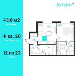 Продаётся 1-комнатная квартира в строящемся доме (Дом 6к1), срок сдачи: III-кв. 2026, общей площадью 43.6 кв.м., на 12 этаже. Новый жилой комплекс "Futuro" от застройщика "newton" расположен в г. Тюмень на Ставропольской улице.