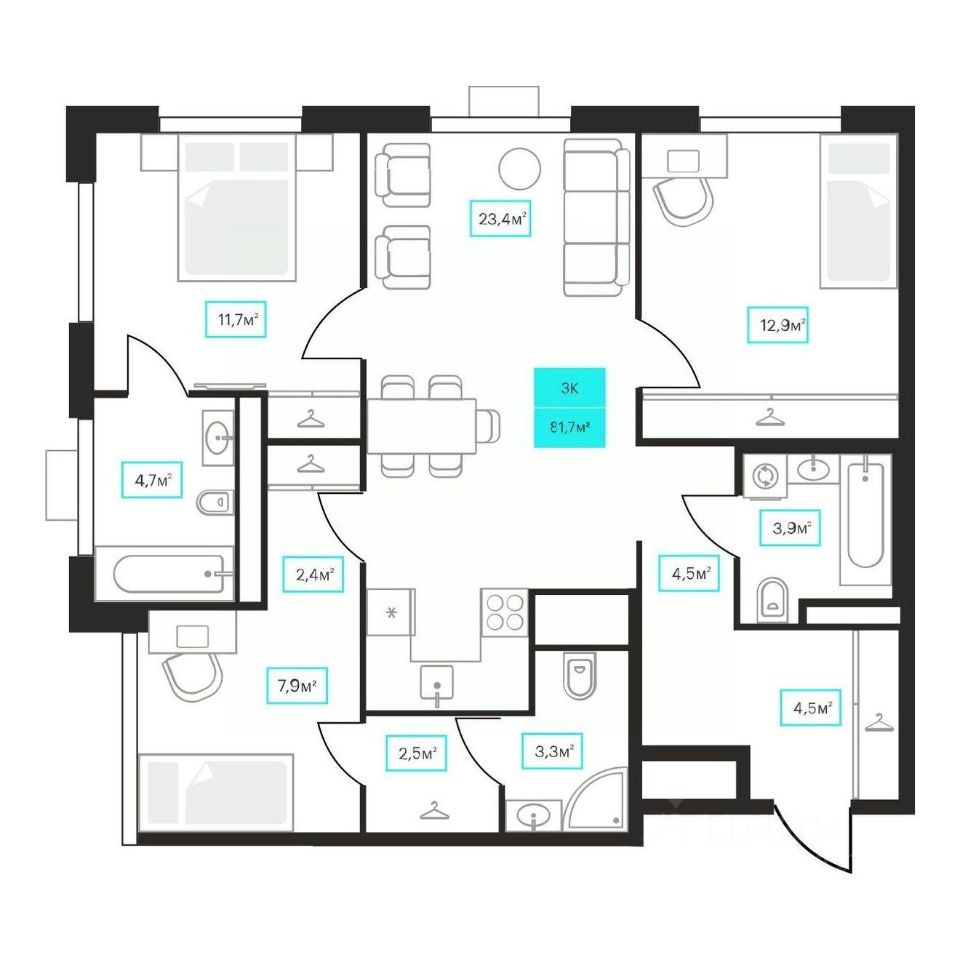 Продаётся 3-комнатная квартира в строящемся доме (Дом 6к1), срок сдачи: III-кв. 2026, общей площадью 81.7 кв.м., на 13 этаже. Новый жилой комплекс "Futuro" от застройщика "newton" расположен в г. Тюмень на Ставропольской улице.