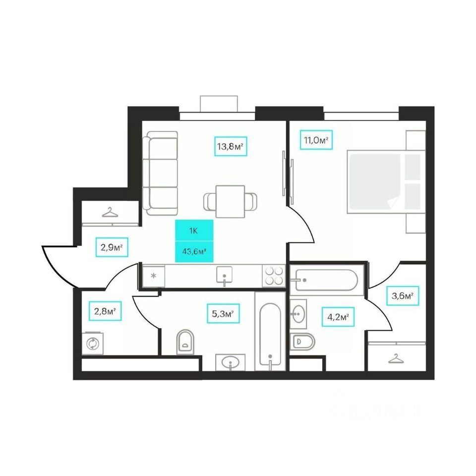 43,6 м²
