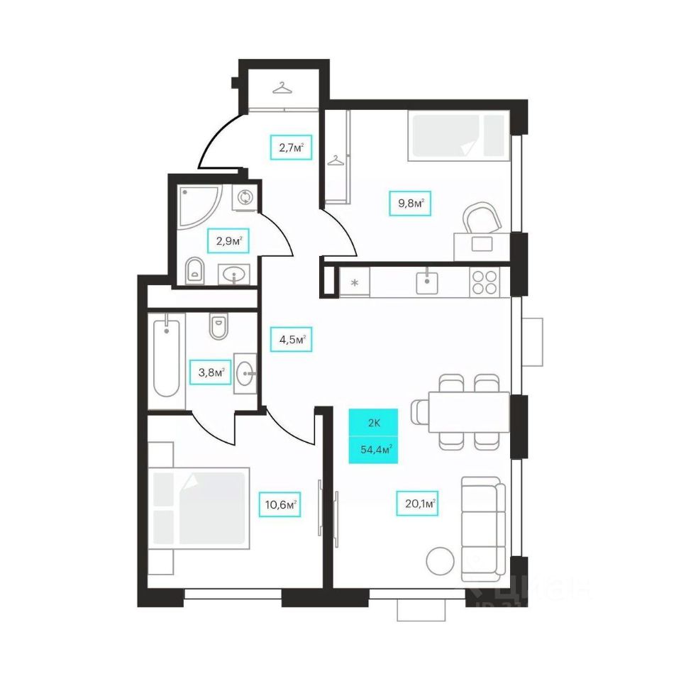 54,4 м²