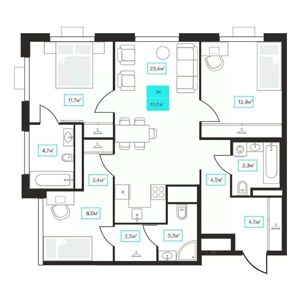 Продаётся 3-комнатная квартира в строящемся доме (Дом 6к1), срок сдачи: IV-кв. 2025, общей площадью 81.8 кв.м., на 17 этаже. Новый жилой комплекс "Futuro" от застройщика "newton" расположен в г. Тюмень на Ставропольской улице.