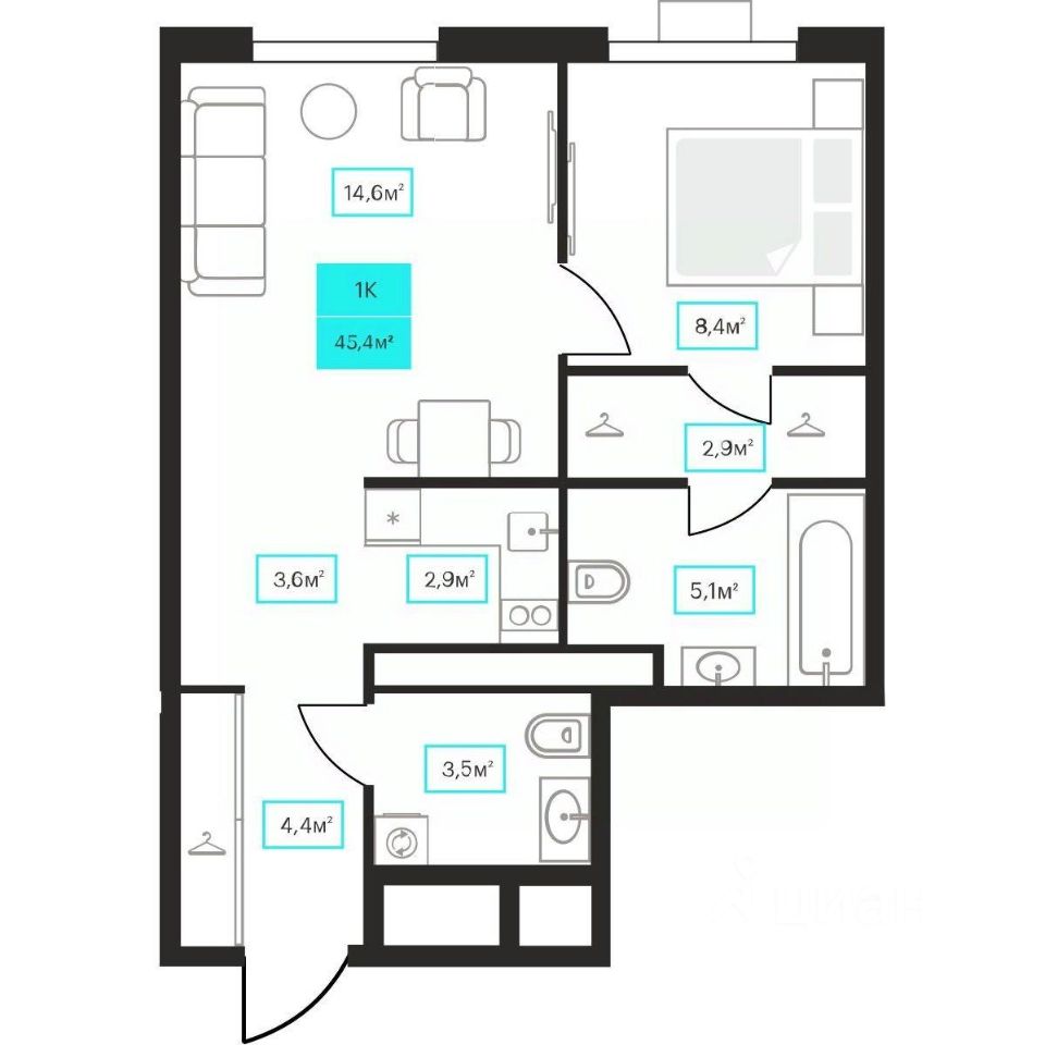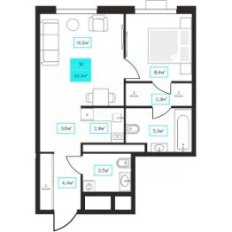 Продаётся 1-комнатная квартира в строящемся доме (Дом 6к1), срок сдачи: IV-кв. 2025, общей площадью 45.4 кв.м., на 19 этаже. Новый жилой комплекс "Futuro" от застройщика "newton" расположен в г. Тюмень на Ставропольской улице.