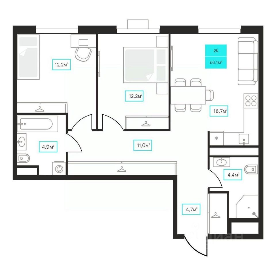 Продаётся 2-комнатная квартира в строящемся доме (Дом 6к1), срок сдачи: III-кв. 2026, общей площадью 66.1 кв.м., на 20 этаже. Новый жилой комплекс "Futuro" от застройщика "newton" расположен в г. Тюмень на Ставропольской улице.