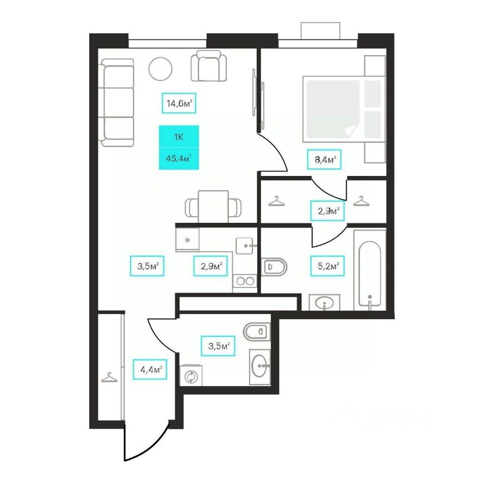 45,4 м²